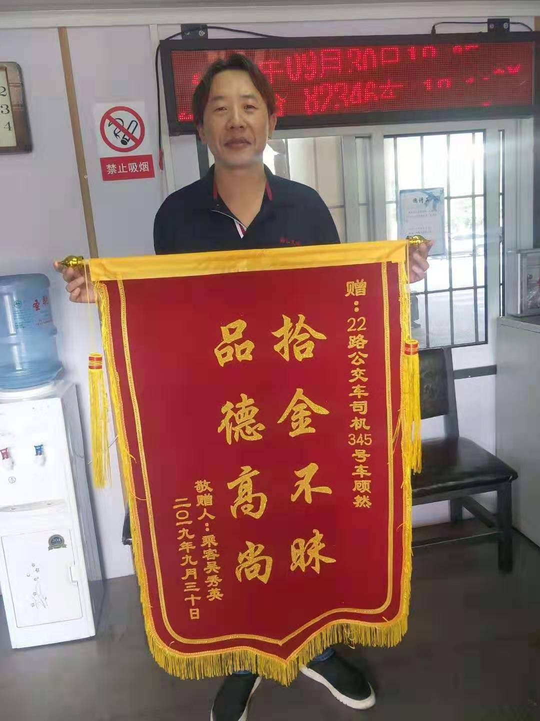 “感謝公交公司培養(yǎng)了這么好的師傅啊,要不是你們主動打電話給我,我丟都不道哪丟的,我還得去補證件太麻煩了!” 9月30日一大早,家住在鐵西區(qū)的吳大娘手拿錦旗急匆匆來到了公交22線樞紐站休息室內(nèi),找到3080345號車駕駛員顧然師傅,親自將印有“品德高尚,拾金不昧”的錦旗送到他的手中。 原來在3天前的下午,吳大娘在鐵西區(qū)委乘坐22線公交車后,因隨身攜帶的東西太多,把手提包及背包都放在了座椅的一側(cè),吳大娘在二臺子站下車后回到家中突然發(fā)現(xiàn)背包沒有了,吳大娘心急如焚,因為背包里不僅僅有幾十元的現(xiàn)金還有很多重要的證件及證明材料,這些東西對自己十分重要,補辦十分不便。因為上了年紀,吳大娘記不起背包到底丟在哪里了,正在焦急尋找之時,吳大娘接到了鞍山交運集團三公司客運八隊駕駛員顧師傅的電話,詢問她是否丟失了一個背包。顧大娘接到電話后立即趕到站前樞紐站調(diào)度室,取回了遺失的背包!原來在公交車到終點后,顧師傅在車內(nèi)例行巡視時發(fā)現(xiàn)了這個背包,打開后找到了有吳大娘的聯(lián)系方式并撥打了這個電話。 22線不僅是文明服務(wù)線路更是交運集團迎賓線路,從創(chuàng)建迎賓線路開始,全體22線駕駛員始終不忘初心,為的就是服務(wù)好每一名乘客。顧然同志所在路隊已對顧然同志給予了公開表揚,并勉勵全體同志要把“學習雷鋒好榜樣,優(yōu)質(zhì)服務(wù)暖人心”的精神繼續(xù)發(fā)揚。