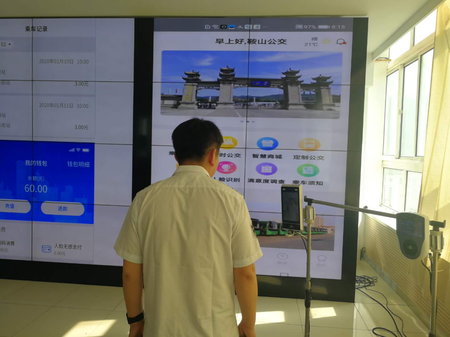 隨著全市“公交都市”創(chuàng)建工作穩(wěn)步推進,鞍山交運集團推出智慧公交APP平臺,使鞍山市成為全省首個擁有集線上營業(yè)廳、掃碼乘車、線路查詢、定制公交,滿意度調(diào)查、尋物啟事、智慧商城、人臉識別等8項功能于一體智能乘車系統(tǒng)的城市。實現(xiàn)普通IC卡與智慧公交APP自由高效并行,引領(lǐng)全省公交行業(yè)智慧發(fā)展,使鞍山公交智能化水平躋身全國先進行列。此APP電子公交卡與普通公交卡享受同等優(yōu)惠,普通卡押金20元可以退還,電子卡開卡費用10元,不予退款,乘客可自由選擇。