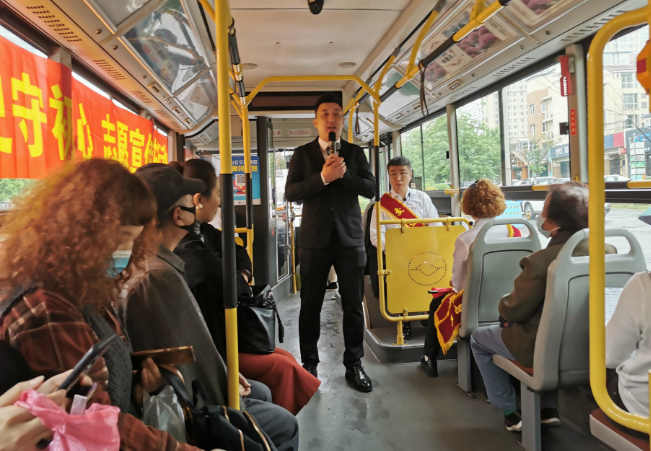 5月13日,216路公交車上,一堂生動(dòng)的 “流動(dòng)黨史課”在車廂內(nèi)進(jìn)行著,青年志愿者們身披綬帶,熱情演出。演講員講訴黨史故事《沂蒙山》,追尋革命先輩的光輝足跡,回顧和展現(xiàn)中華民族偉大復(fù)興中國(guó)夢(mèng)的奮斗歷程;宣傳員快板表演《我是企業(yè)宣傳員》,用節(jié)奏鮮明的語(yǔ)言介紹公交車的發(fā)展脈絡(luò),從公交變化看時(shí)代進(jìn)步,從駕駛員優(yōu)質(zhì)服務(wù)和乘客文明乘車的視角講述和諧美麗大鞍山。